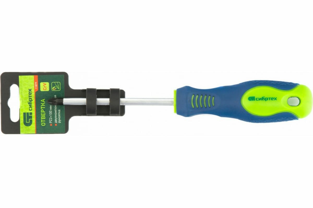 Отвертка Сибртех , PZ2 x 100 мм, из стали CrV, с 2-х компонентной рукояткой, оснащена крестовым шлицем с 4 дополнительными насечками для лучшего сцепления с крепежом. Она подходит для монтажа/демонтажа крепежных элементов типа Pozidriv. Отвертка полупрофессионального класса поможет при сборке мебели, установке полок и т.д. Стержнем длиной 100 мм удобно работать на поверхностях и в углублениях.