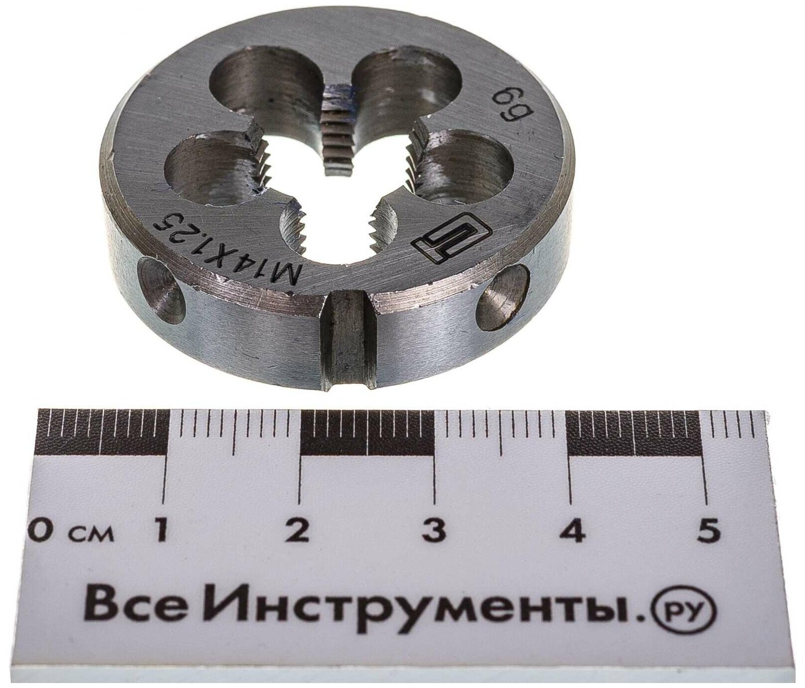 Плашка круглая СИБРТЕХ предназначена для нарезания внешней метрической резьбы.Твердость режущих кромок 60 HRC, что соответствует требованиям ГОСТ 9740-71.Изготовлена из инструментальной стали 9ХС.