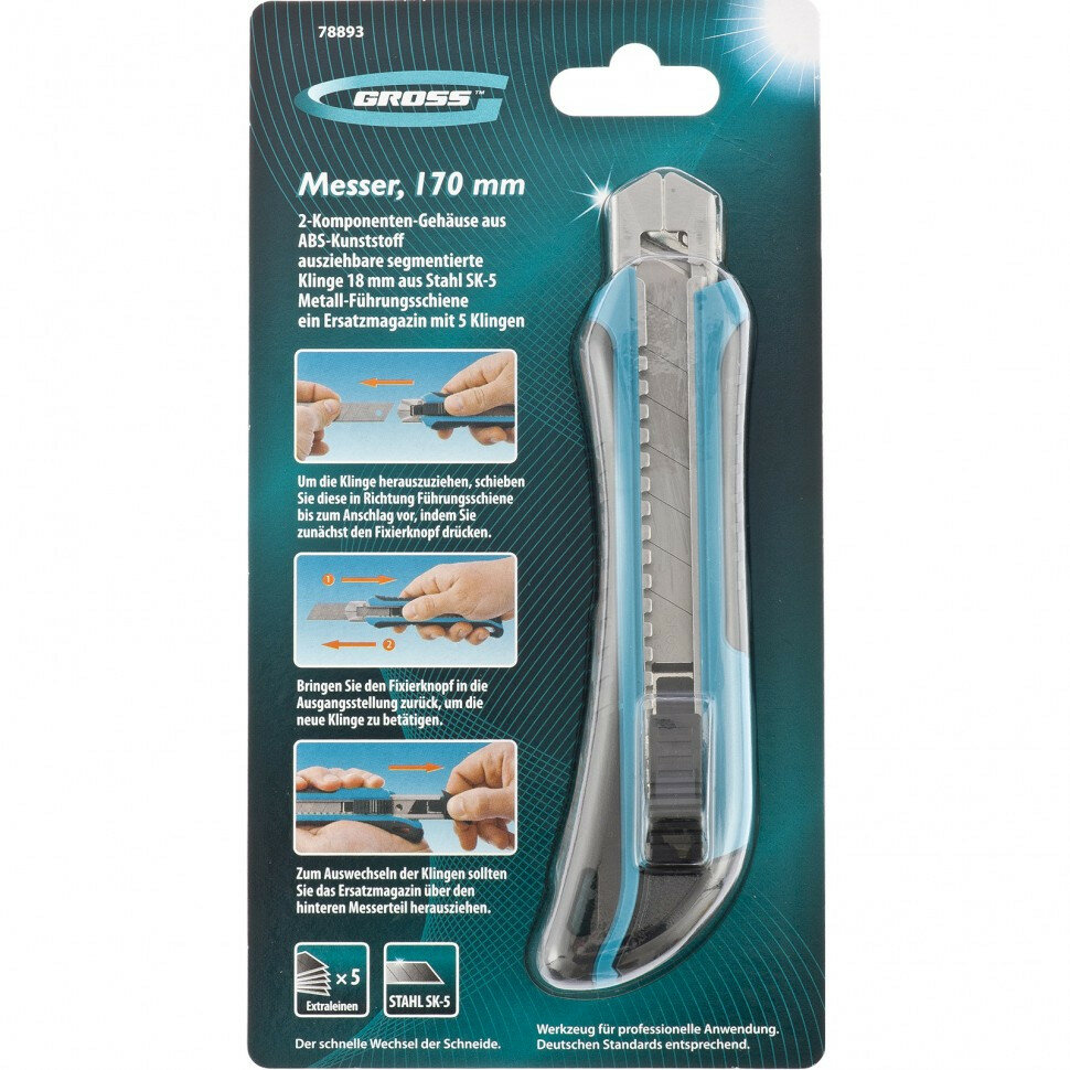Нож GROSS 78893, 18мм, 5шт