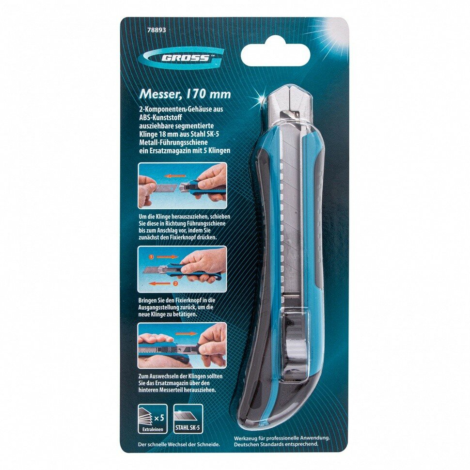 - Нож GROSS 78893, 18мм, 5шт