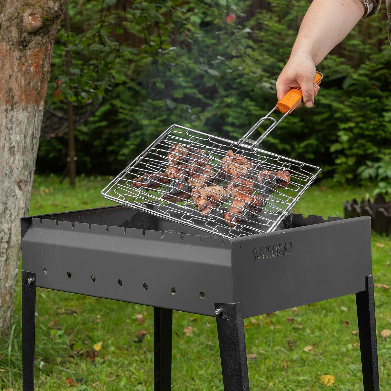 Решетка-гриль PALISAD Camping сделает отдых на природе еще более приятным и комфортным. Решетка предназначена для приготовления нарезанной на ломтики рыбы или цельных тушек. Также подойдет для запекания мяса и птицы, овощей, сосисок и колбасок, грибов. PALISAD Camping изготовлена из высококачественной жаропрочной стали с антипригарным покрытием. Она не придает блюду специфический привкус металла и легко очищается от загрязнений.