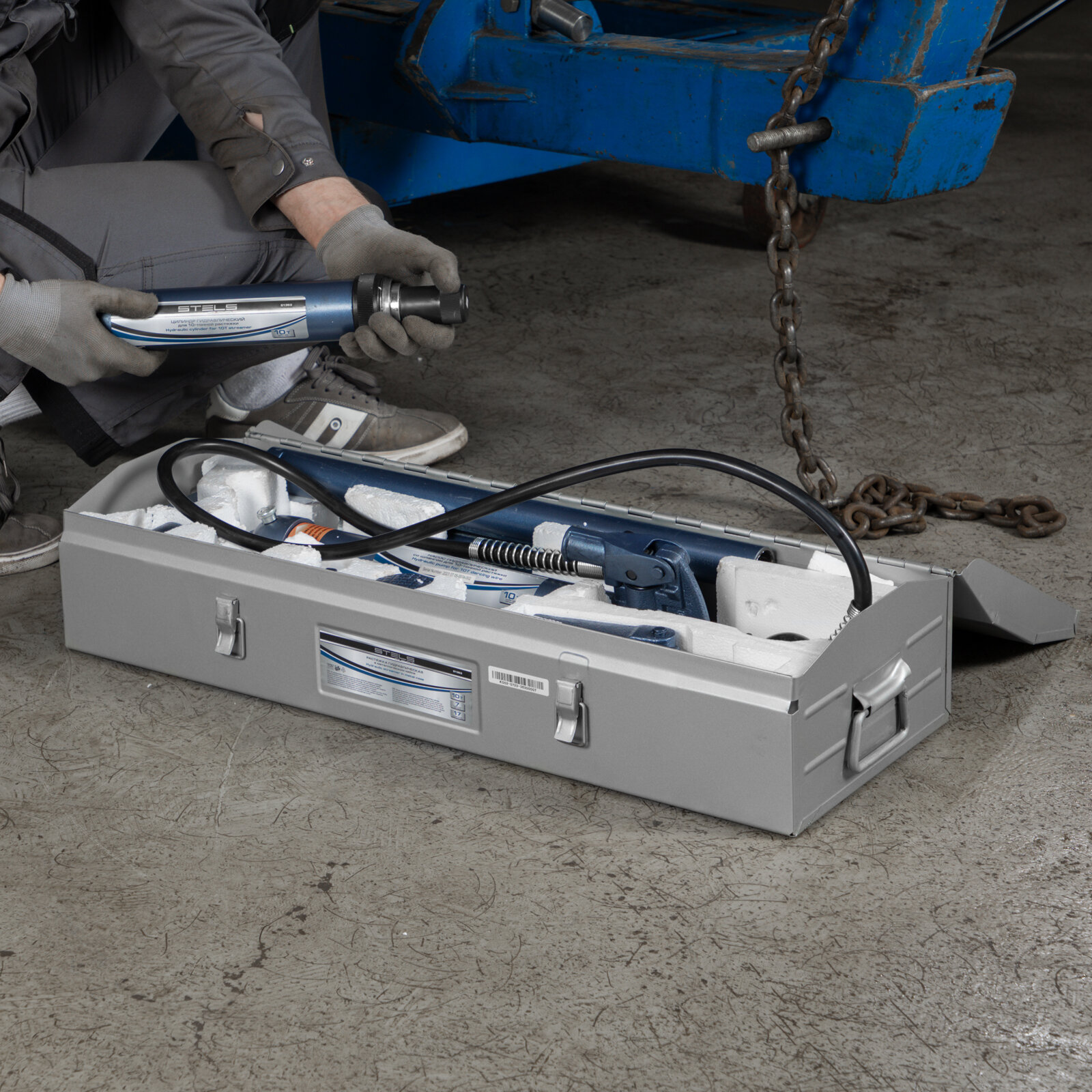 - Растяжка гидравлическая 10 т, набор из 16 предметов, в металлическом кейсе // Stels 51353