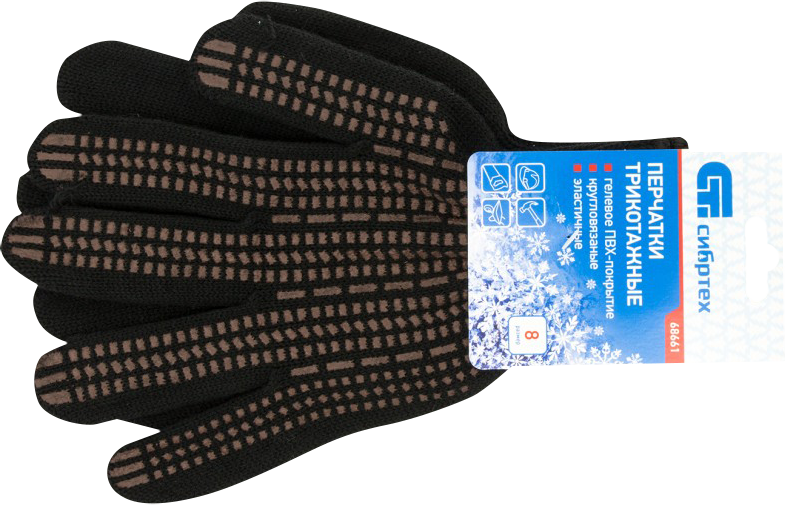| Доп. наименование Водопад | Перчатки Сибртех 68661 трикотажные, акрил, ПВХ гель "Протектор", чёрные, оверлок |
