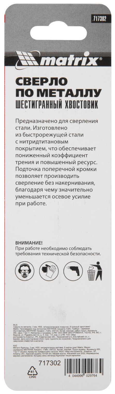 Сервис сравнения цен СкидкаГИД предлагает сравнить цены на товар «Сверло по металлу MATRIX 717302»