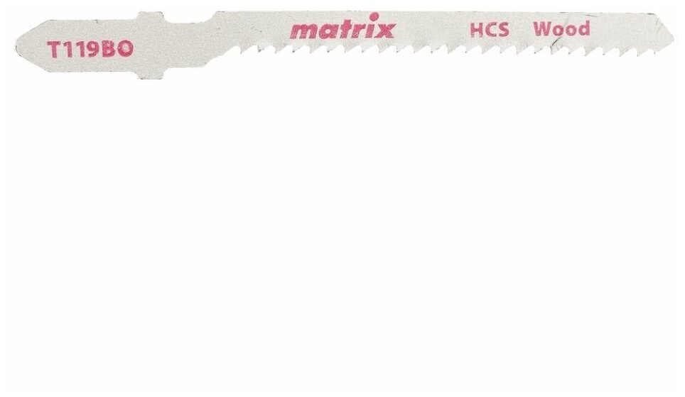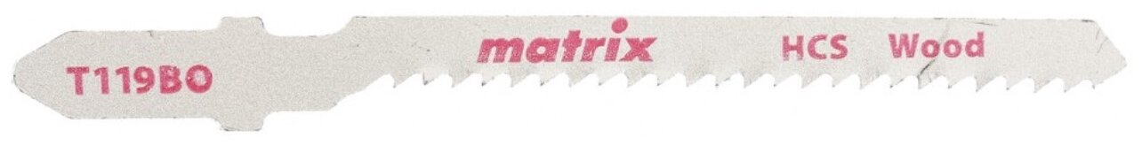 | Прочие характеристики и свойства | Полотна для электролобзика торговой марки Matrix осуществляют чистый криволинейный пропил мягкой древесины, ДСП, столярных плит, ДВП, пластика (2-15 мм). |