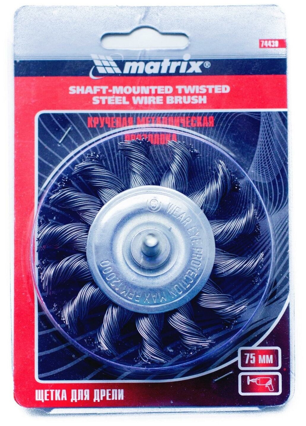 Плоская щетка со шпилькой для дрели Matrix диаметром 75 мм, с крученой металлической проволокой, позволяет быстро очистить металлическую, деревянную или бетонную поверхность от загрязнений, ржавчины, старой краски или лака. Используется для обработки внутренних углов, пазов, изгибов, узких и труднодоступных мест. Подходит для очистки сварных швов. При помощи хвостовика диаметром 6 мм щетку устанавливают в патрон дрели или ПШМ с максимальной частотой вращения до 12500 об/мин. Насадка применяется в строительстве, машиностроении, пригодится также в быту. Во время работы со щеткой следует использовать средства индивидуальной защиты. ПреимуществаЩетина из крученой проволоки диаметром 0,5 мм успешно справляется с толстым слоем ржавчины или лакокрасочного покрытия. Для изготовления щетины использована высококачественная проволока из прочной стали, что обеспечивает долговечность оснастки. Цинковое покрытие корпуса и масляная пленка на щетине обеспечивают защиту щетки от коррозии. Оснастка произведена на крупном заводе с постоянным контролем качества, что гарантирует ее надежность.