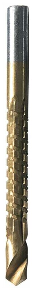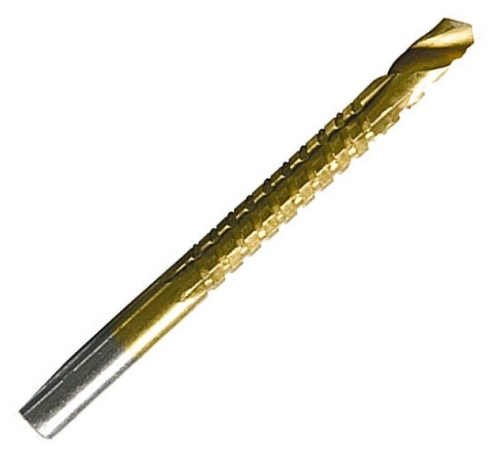 | Прочие особенности и свойства | Универсальное сверло-фреза изготовлено из инструментальной легированной стали (марка Р4М4Х2), имеет нитридтитановое покрытие, которое увеличивает срок службы сверла. Является многофункциональным, позволяя производить сверление и последующее фрезерование листовых материалов (металла, пластмассы, древесины, фанеры и т.п.). |
