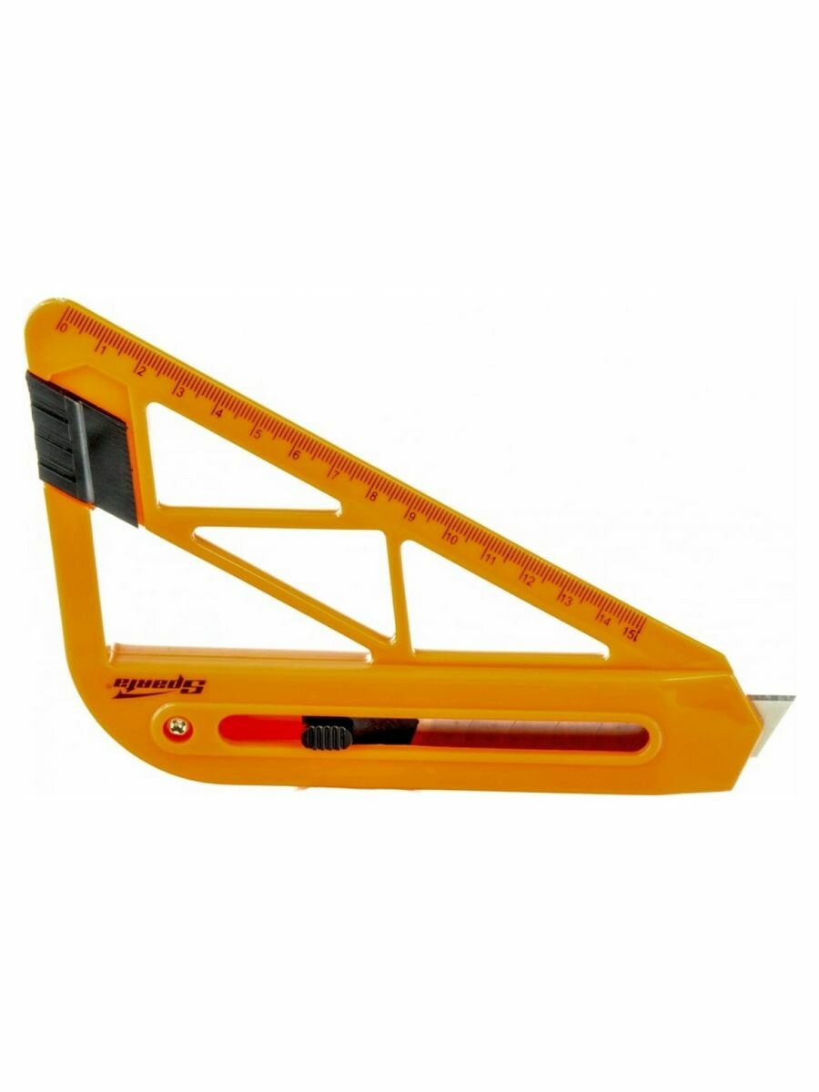 Нож универсальный Sparta 18 мм выдвижное лезвие для резки обоев имеет пластмассовый корпус специальной формы с нанесенной миллиметровой шкалой, обеспечивающей разрез на нужную длину, фиксация лезвия автоматическая.