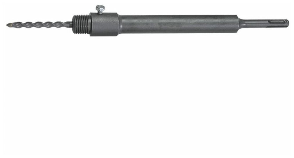Хвостовик изготовлен из углеродистой стали и имеет профиль SDS-PLUS, применяется с перфораторами. Служит для крепления центрирующего сверла и позволяет увеличить глубину сверления коронками по бетону.