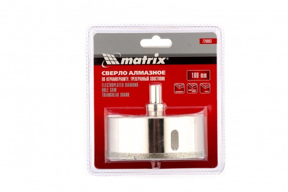 Сверло предназначено для сверления керамогранита, стекла и керамической плитки, обеспечивает точное и чистое отверстие без сколов. Для повышения стойкости сверла, желательно использовать водяное охлаждение.