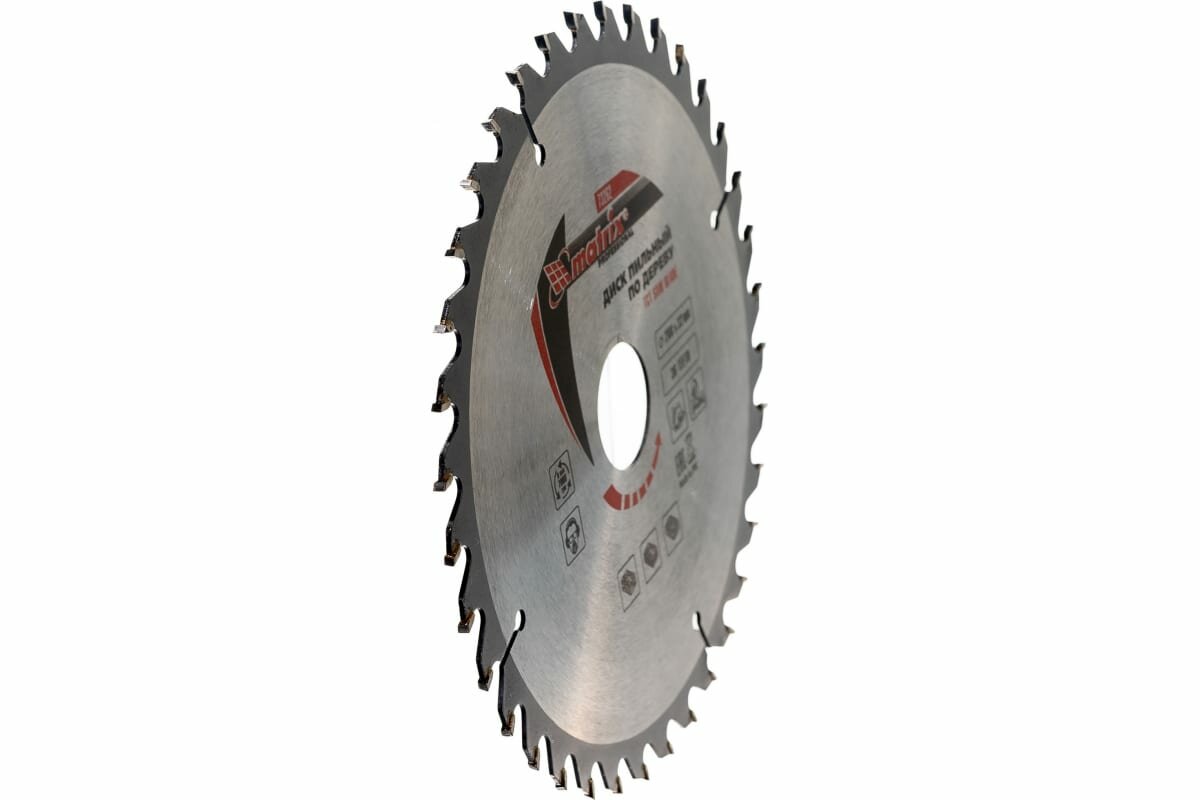 Пильный диск MATRIX Professional произведен с помощью специальная схемы заточки твердосплавных зубьев (ВК4), что позволяет производить качественную распиловку древесины. Компенсационные прорези уменьшают колебания, подавляют шумы и препятствуют изгибанию диска при нагреве.