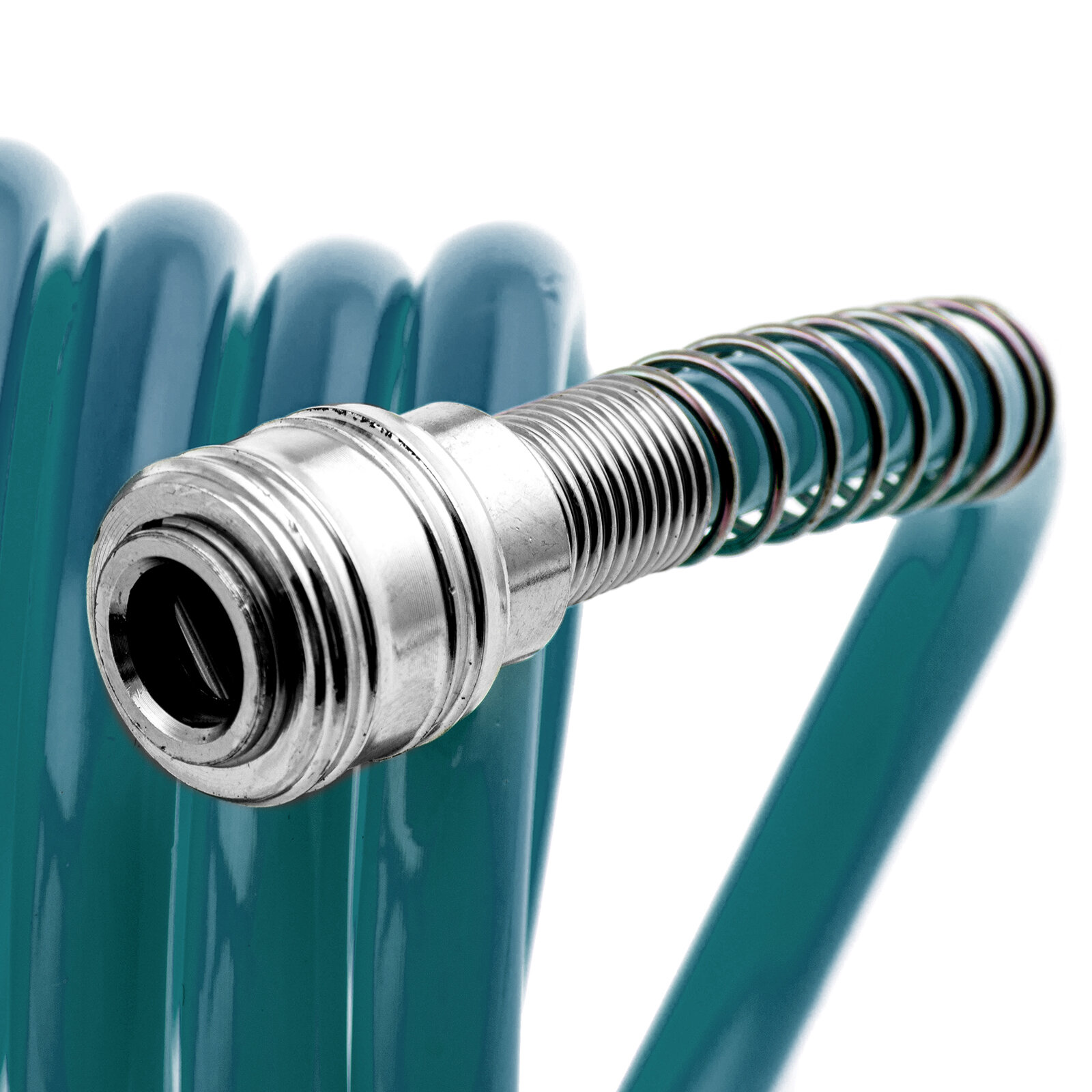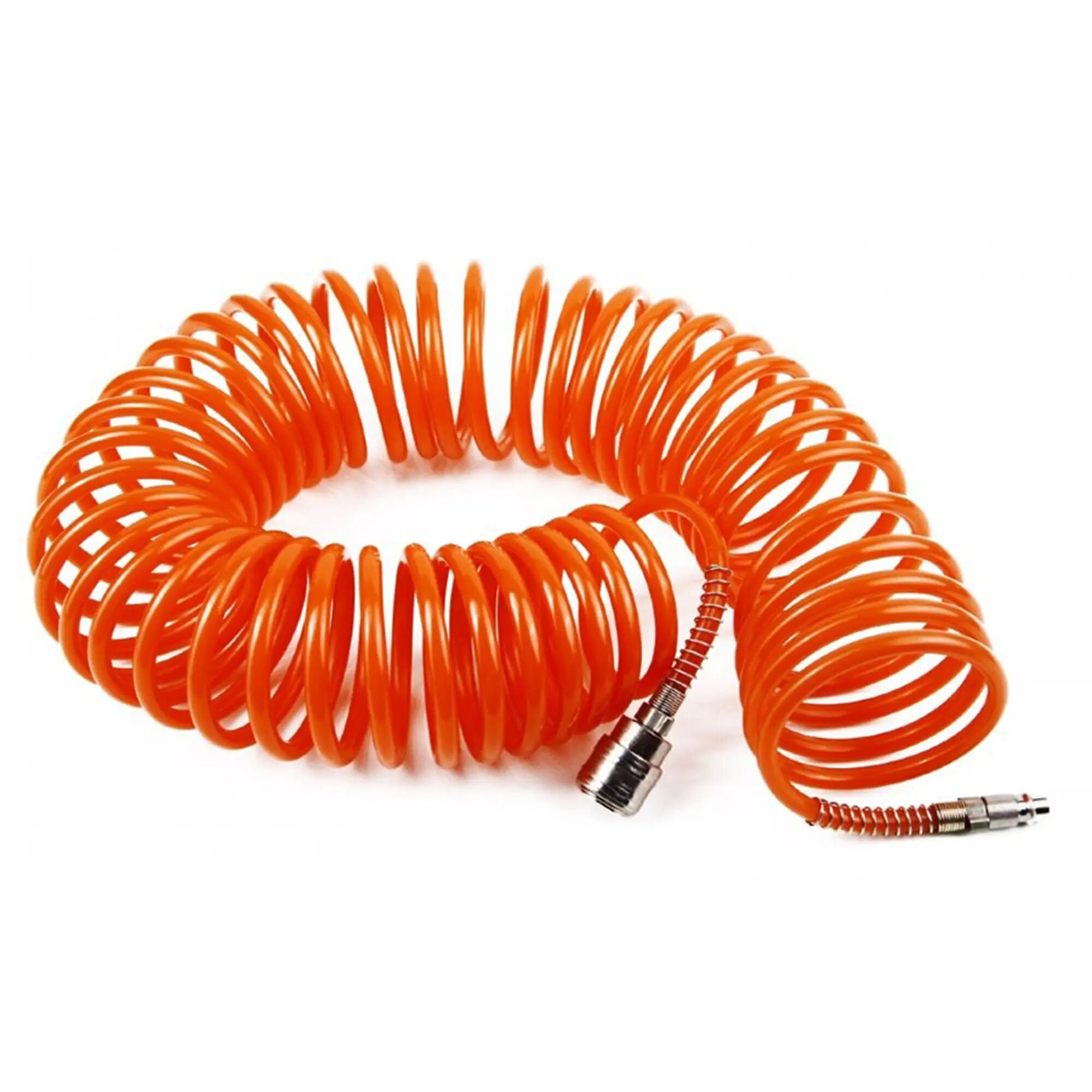 | Прочие особенности и свойства | Шланг спиральный воздушный изготовлен из полиэтилен, стойкого к агрессивным средам., Оснащен быстросъемными соединениями 1/4" (папа-мама) с антикоррозийным покрытием., Используется для соединения компрессора с различными насадками. |