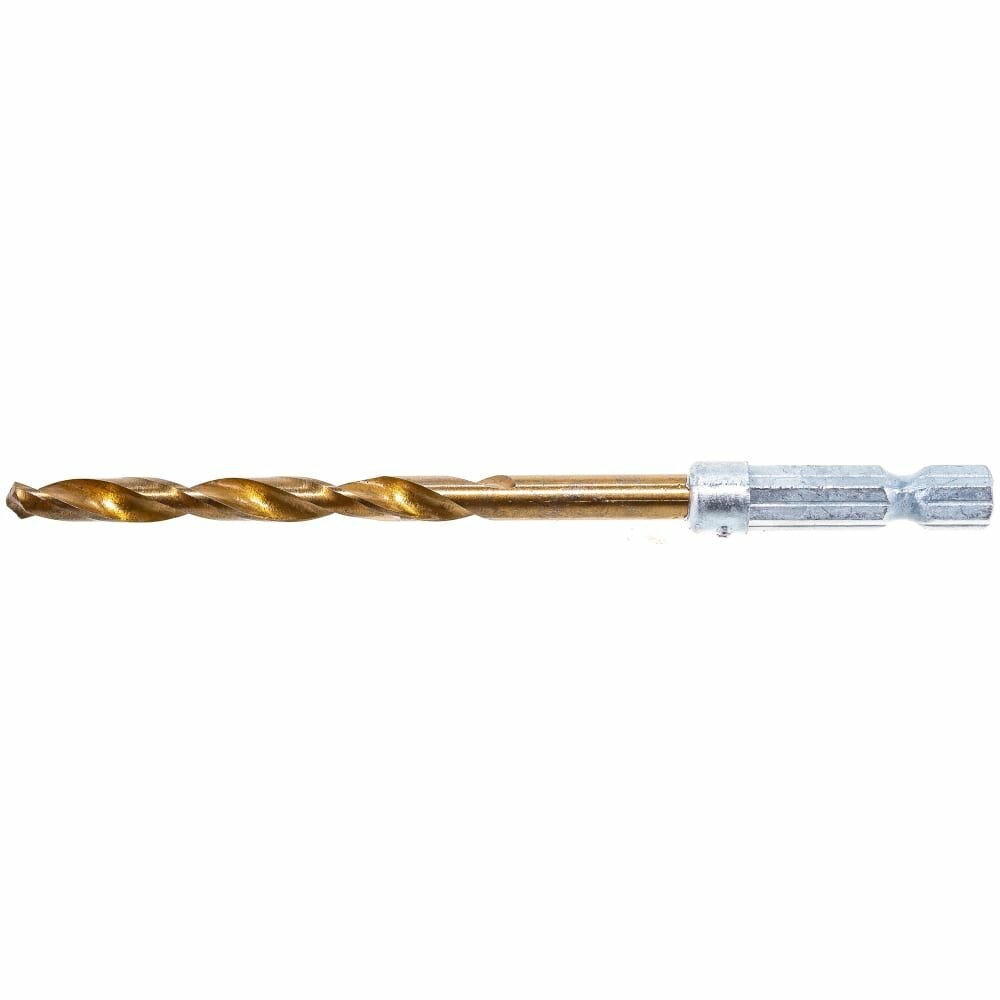 | Прочие особенности и свойства | Сверло по металлу изготовлено из инструментальной легированной стали. Поверхность – из титаносодержащего сплава, что значительно повышает эксплуатационные характеристики сверл по металлу (покрытие из нитрида титана увеличивает стойкость инструмента в 2–2,5 раза). Шестигранный хвостовик предотвращает поворот в патроне. |