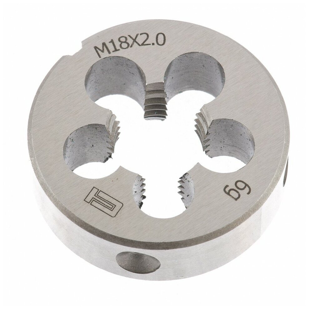 Плашка круглая СИБРТЕХ предназначена для нарезания внешней метрической резьбы.Твердость режущих кромок 60 HRC, что соответствует требованиям ГОСТ 9740-71.Изготовлена из инструментальной стали 9ХС.