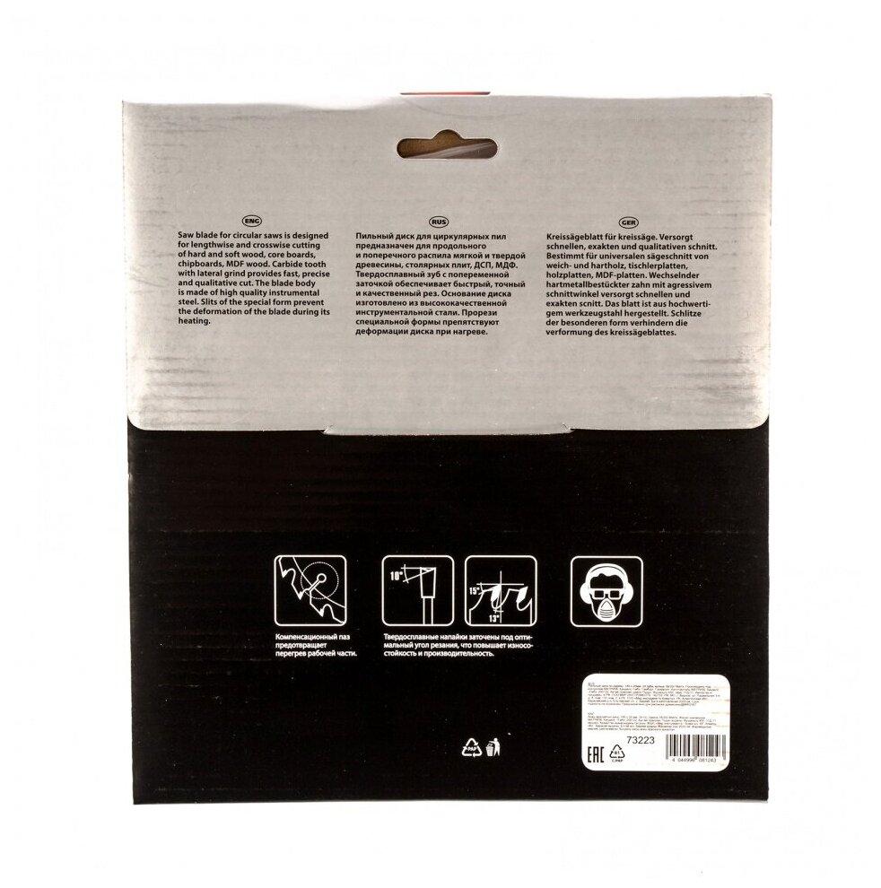 Диск Matrix Professional предназначен для продольного и поперечного распила древесины. Корпус диска шлифованный, изготовлен из стали 65Г и термонормализован. Зубья из ВК8 припаяны высокопрочным припоем. Алмазная заточка с выхаживанием значительно увеличивает срок службы инструмента.
