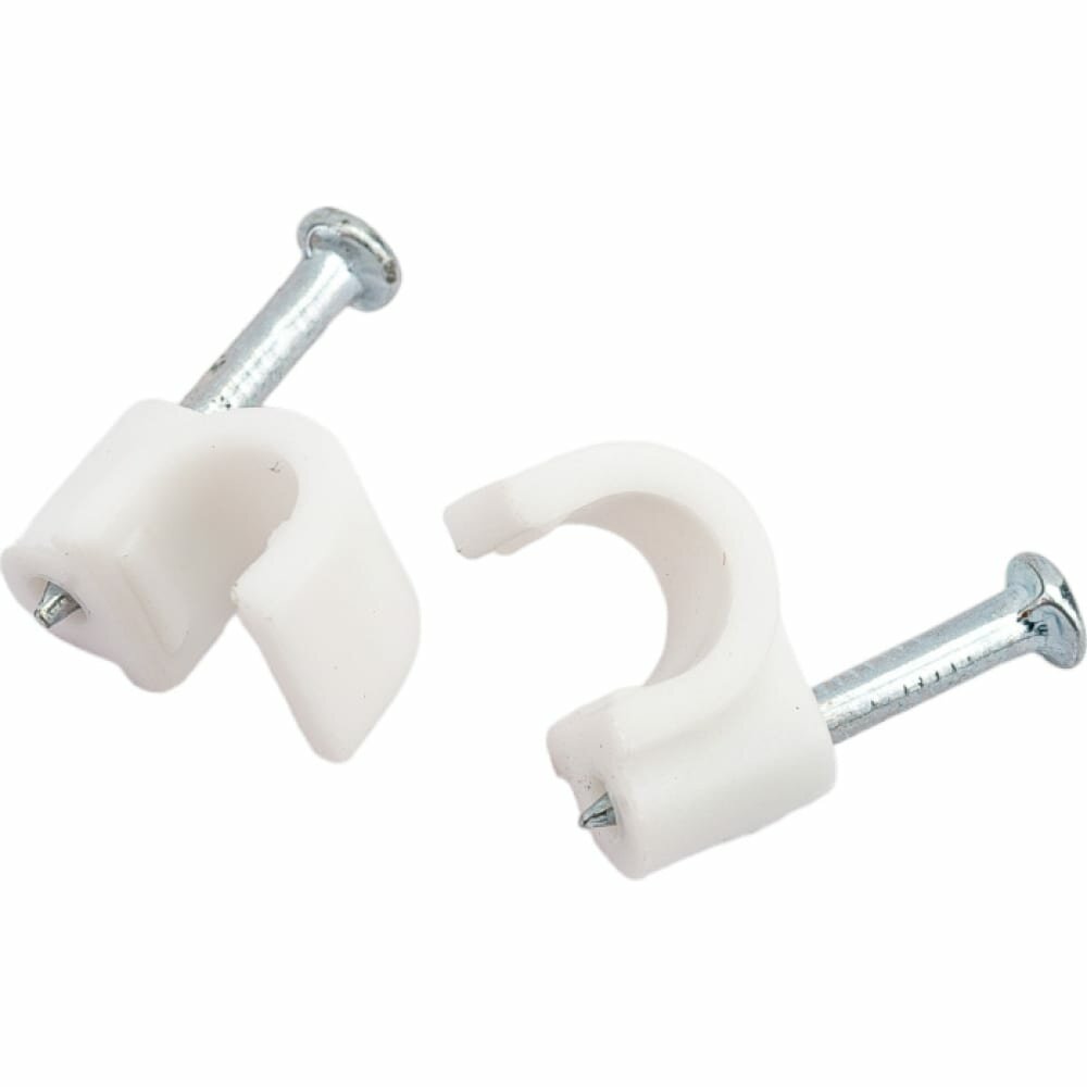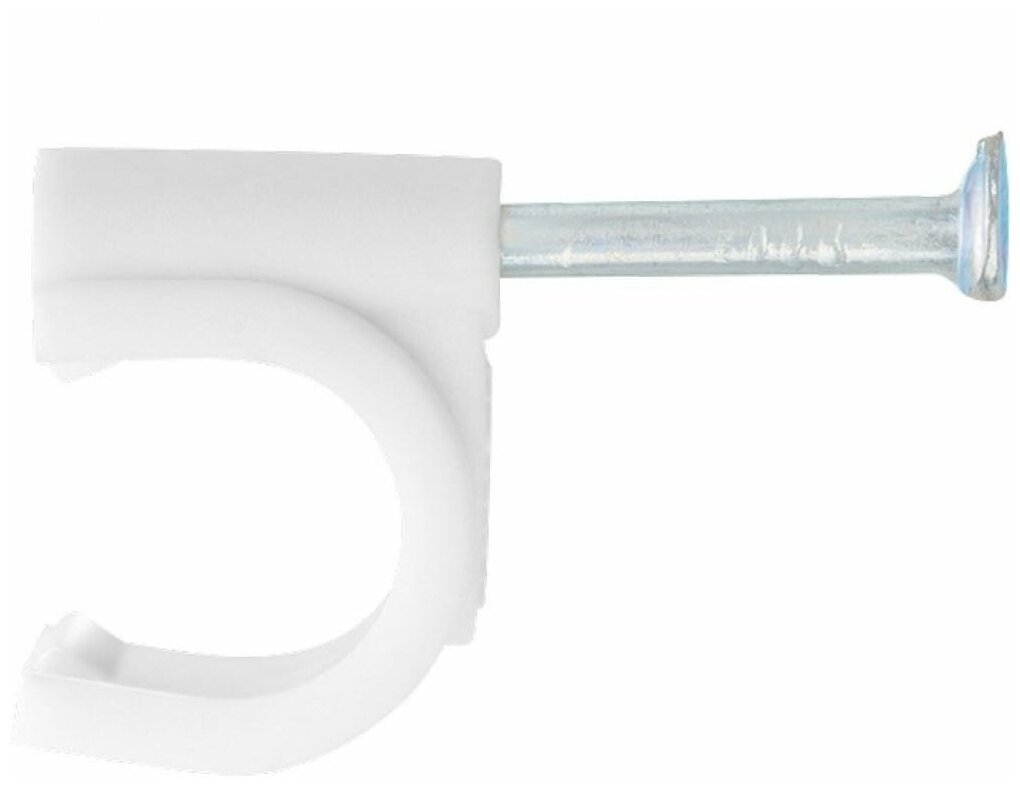 Крепежная скоба для кабеля СИБРТЕХ имеет круглый профиль размером 5 миллиметров и поставляются в комплекте с металлическим гвоздем. Электроустановочная скоба используется при монтаже проводки, антенного и телефонного кабеля.
