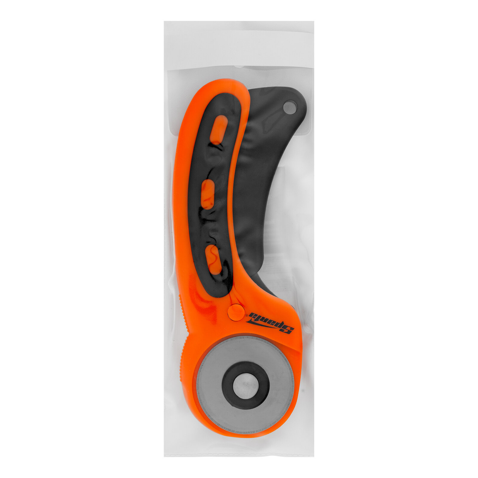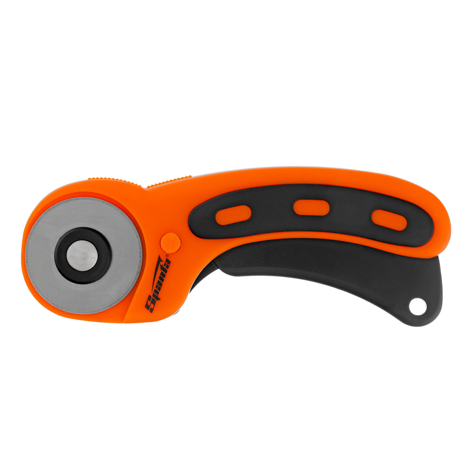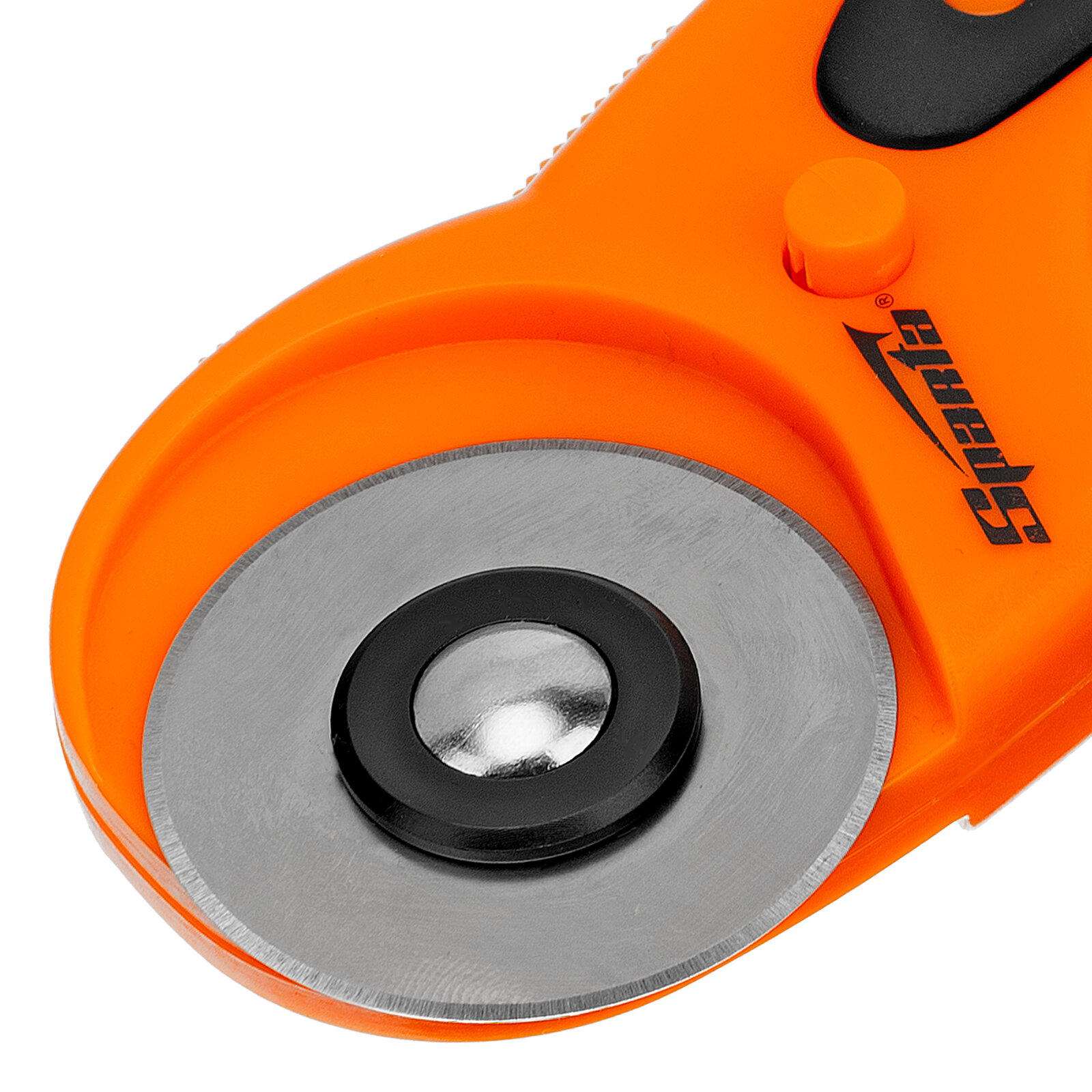Лезвие вращающееся, что облегчает процесс резания картона, линолеума, кожи и т. д., Нож имеет пластиковую ручку эргономичной формы.