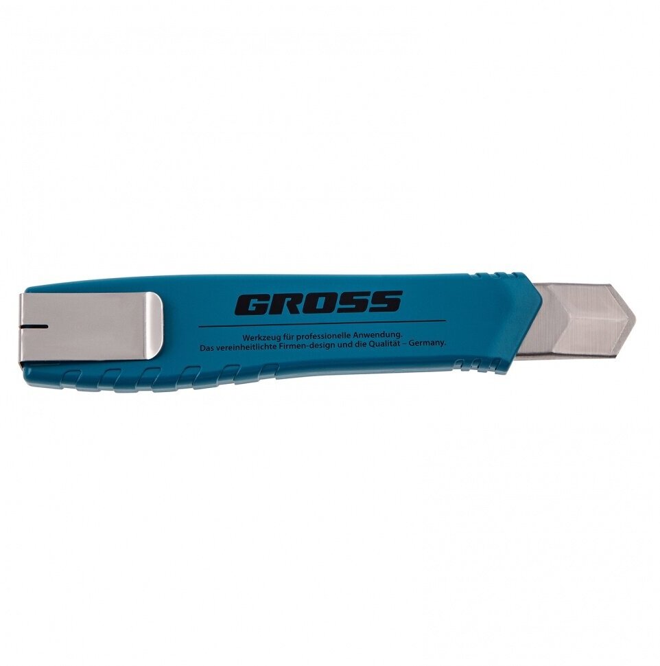 Нож канцелярский GROSS позволяет комфортно выполнять работы на высоте, поскольку на алюминиевом корпусе расположена клипса для ремня. Нож отличается высокой режущей способностью.