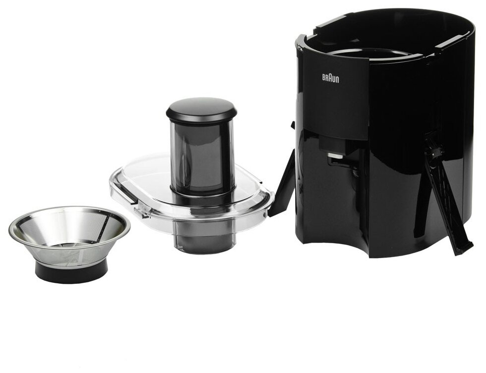 В целом соковыжималка в полном объеме оправдывает свою цену. По сравнению с конкурентами данной ценовой категории Braun J300 имеет мощность 800 Вт, более компактная, никаких "лишних" деталей "не торчит", надежный фиксатор верхней крышки. Исходя из отзывов выбор был между между Braun J300,500,700 и Вosсh mes 3000. От последней модели (хотя на ней есть присоски) меня в основном оттолкнули отзывы о разбитой верхней крышке при отжиме из твердых овощей (моркови). J500 и j700 отличаются от j300 наличием функции "капля-стоп" (на мой взгляд, данная функция не настолько важна, поскольку, как показала практика, после того как остановится соковыжималка сок и так перестает капать через несколько секунд, данная функция скорее важна для соковыжималок, приобретаемых в коммерческих целях, но не для бытовых)и мощностью. Но переплачивать 2000 руб. за лишних 200 Вт (j700-1000 Вт) мне было жалко. Во всем остальном, на мой взгляд, данные соковыжималки одинаковые, внутри все пластиковое, на j700 металл только сверху.