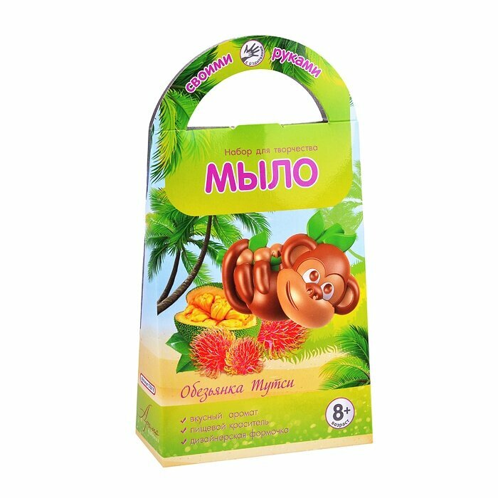 Набор для творчества Обезьянка Тутси от компании Развивашки позволит своему владельцу своими руками сварить мыло с ароматом тропических фруктов. Набор для мыловарения состоит из пластмассовой формочки в виде забавной обезьянки и мыльной основы. С готовым ароматным мылом ребенок сможет играться во время купания. Набор рекомендован детям старше 5 лет.