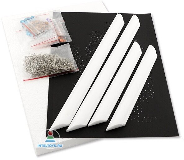 | Комплектация | планшет из пенопласта; основа; схема; пайетки; гвоздики-булавки; рамка |