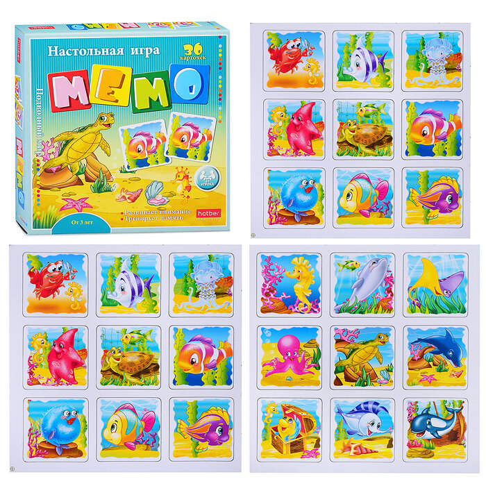 Игра Hatber Мемо 36 карточек Подводный мир (36ИнМ_16888)