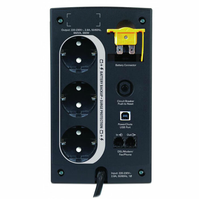 Ведущим мировым производителем источников бесперебойного питания является американская компания APC. Замечательным представителем персональных бесперебойников этой компании является Back-UPS 650VA. Этот источник не только обеспечивает питание компьютера при перебоях в сети, но и стабилизирует напряжение, что не менее важно, поскольку продлевает компьютерной технике срок службы. А чтобы защитить от поломок сам прибор, в нем предусмотрена защита от перегрузки, высоковольтных импульсов и короткого замыкания.