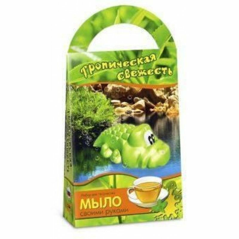 Набор для мыловарения Зеленый чай из серии Тропическая свежесть позволит ребенку в домашних условиях выполнить одновременно и научное, и творческое задание, результатом которого станет оригинальное мыло в форме крокодила с приятным чайным ароматом. Использование этого изделия с гипоаллергенными компонентами будет абсолютно безопасно даже для маленького ребенка.