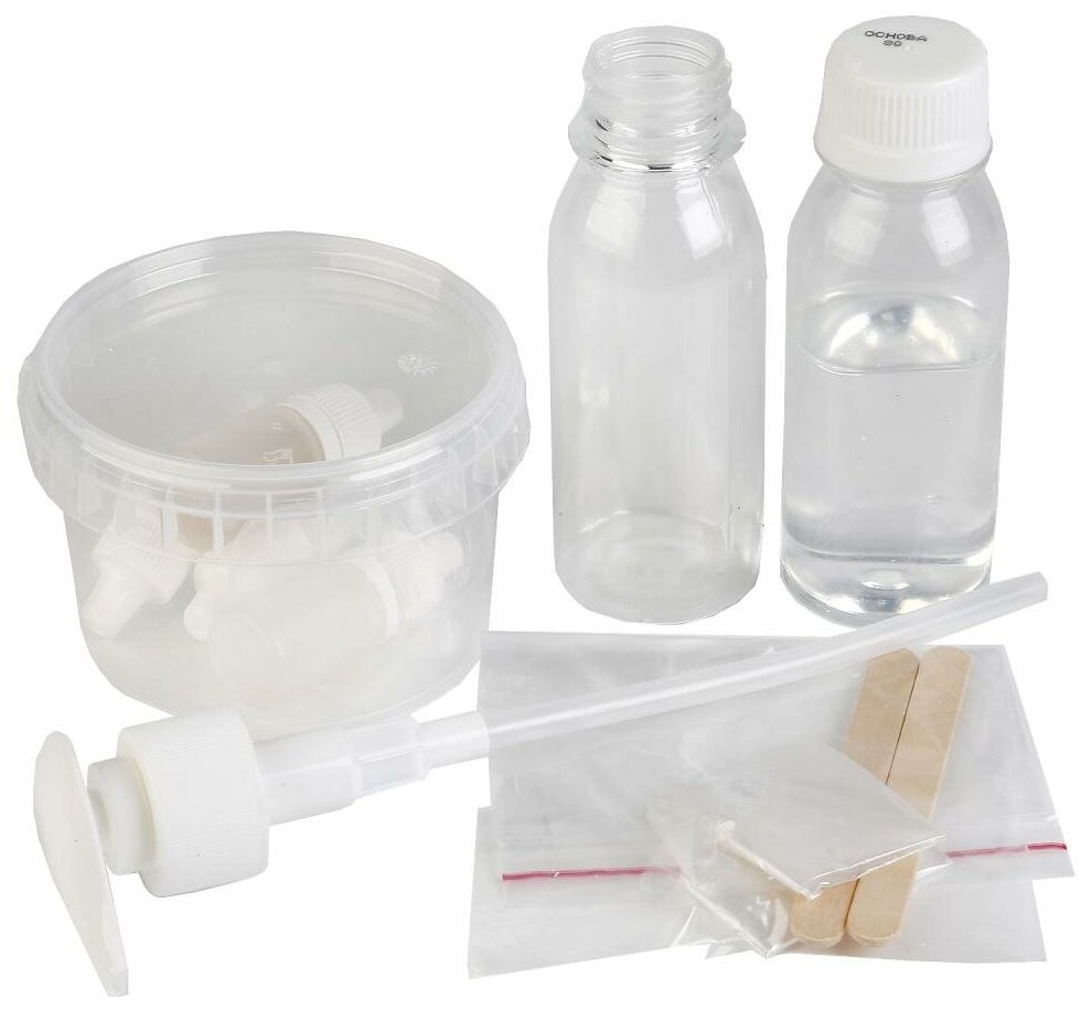 | Состав набора | ароматизатор - 1 шт; мыльная основа - 1 шт; емкость для смешивания - 1 шт; палочки - 1 шт; перчатки - 1 шт; флакон - 2 шт; мерный стакан - 1 шт; наклейки - 1 шт |