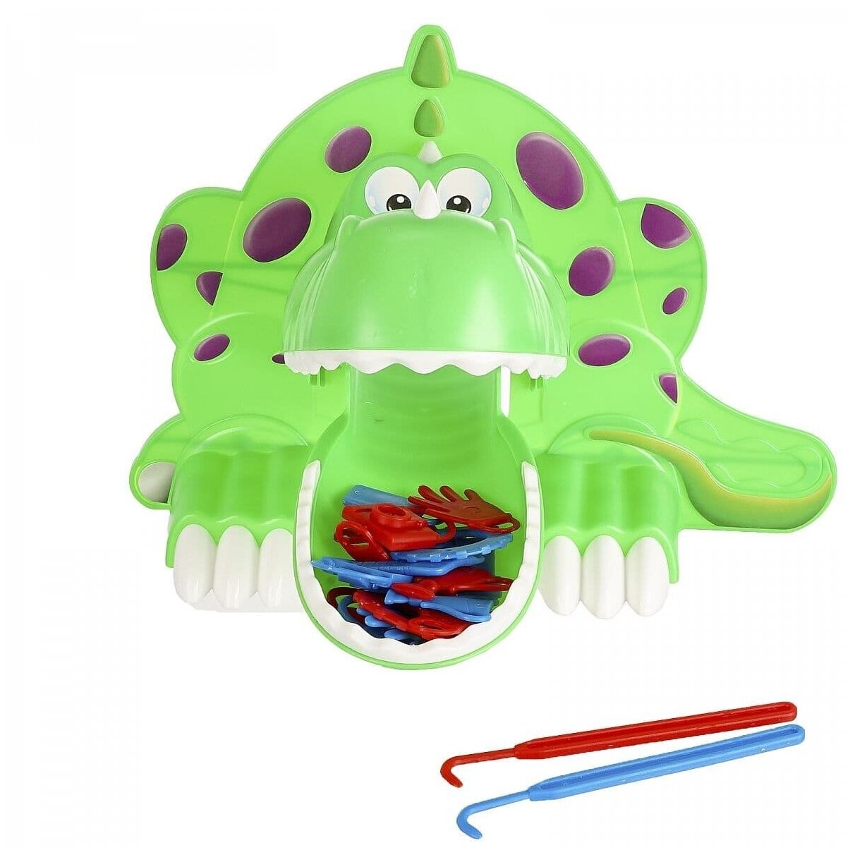 Весёлая настольная игра, направленная на развитие скорости реакции и мелкой моторики рук, Помоги Зубастику. Игра рассчитана на 2-4 участников. Главный персонаж игры - Зубастик - очень любит вкусно полакомиться. Игрокам предстоит отобрать у обжоры лакомства, пока его рот не захлопнулся, как мышеловка. Изготовлено из пластмассы с элементами бумаги. Рекомендованный возраст ребенка от 3 лет. В комплект входит зубастик, 2 крючка, 2 мощные челюсти, 2 пары когтей, 20 вкусностей Зубастика.