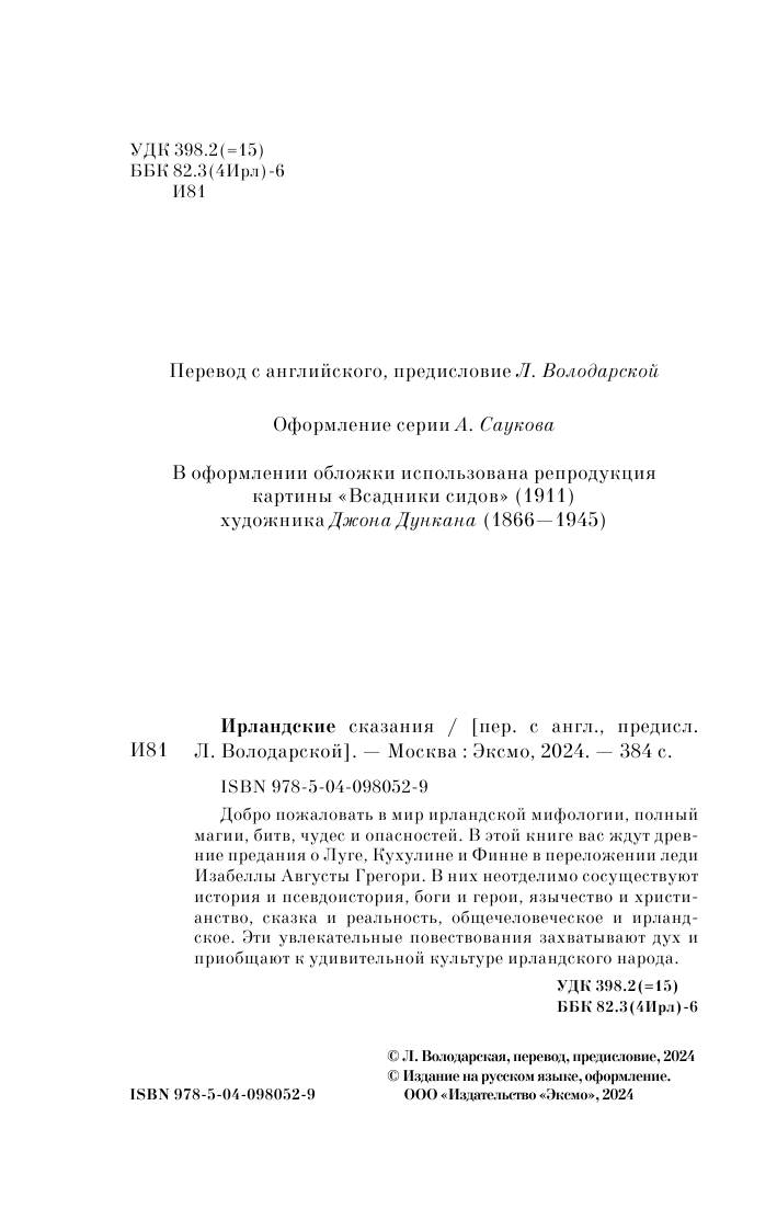 Книга: Ирландские сказания (Володарская Людмила Иосифовна (переводчик)); ООО "Издательство "Эксмо", 2018