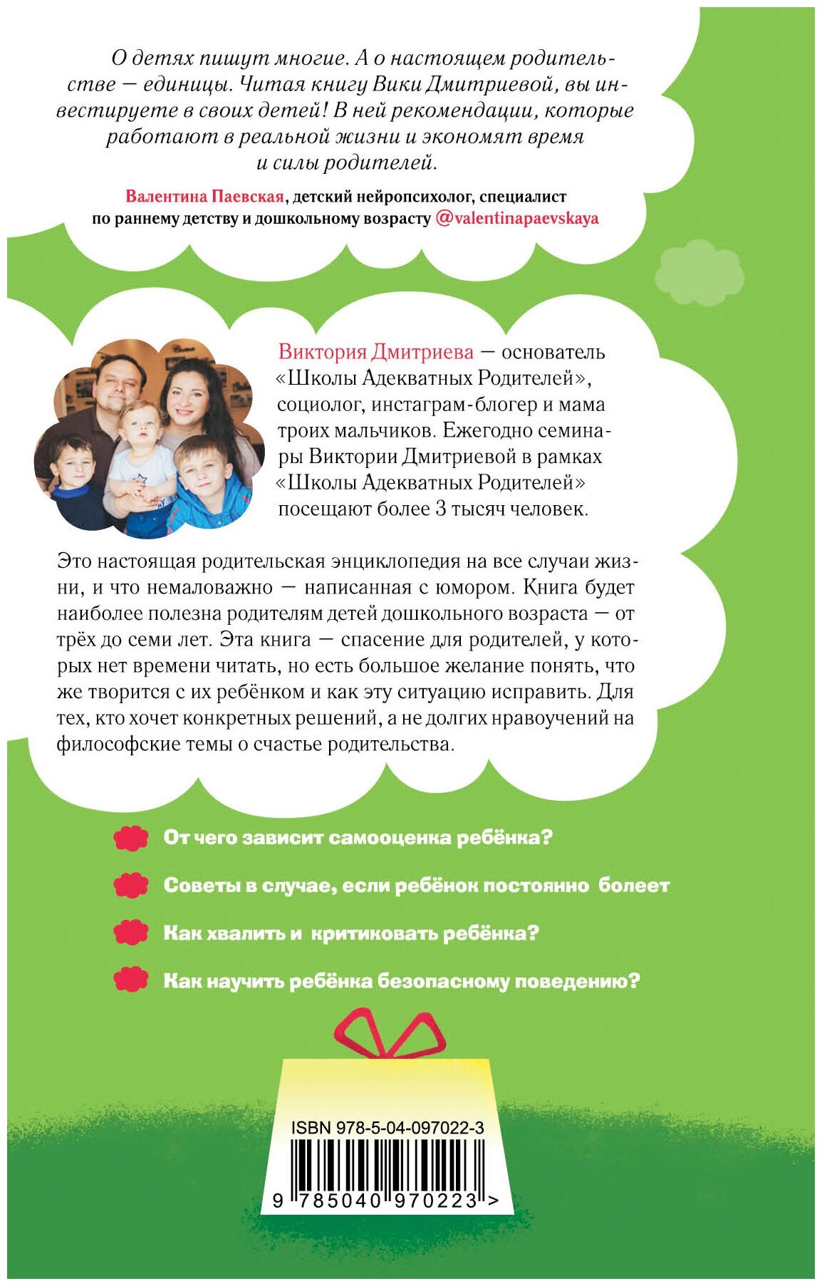 Настоящая родительская энциклопедия на все случаи жизни, и что немаловажно - написанная с юмором. Книга будет наиболее полезна родителям детей дошкольного возраста - от трех до семи лет. Эта книга - спасение для родителей, у которых нет времени читать, но есть большое желание понять, что же творится с его ребенком и как эту ситуацию исправить. Для тех, кто хочет конкретных решений, а не долгих нравоучений на философские темы о счастье родительства.