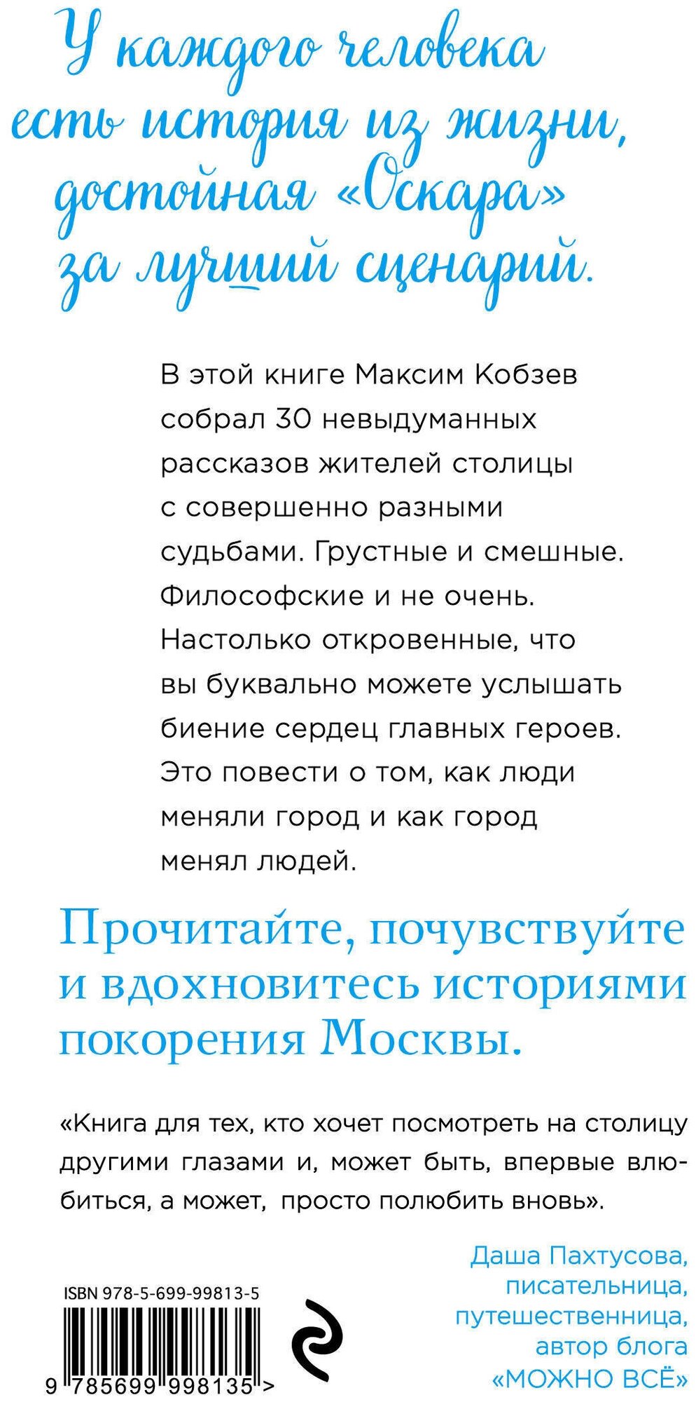 В этой книге Максим Кобзев собрал 30 невыдуманных рассказов жителей столицы с совершенно разными судьбами. Грустные и смешные. Философские и не очень. Настолько откровенные, что вы буквально можете услышать биение сердец главных героев. Это повести о том, как люди меняли город и как город менял людей.