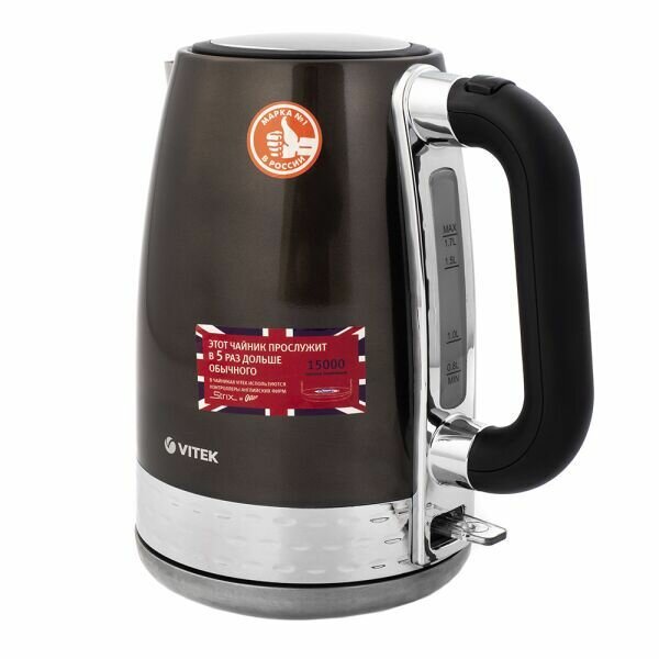 Электрочайник Vitek представлен с контроллером STRIX английского производства, который обеспечивает надежность и безопасность на протяжении 15000 кипячений.