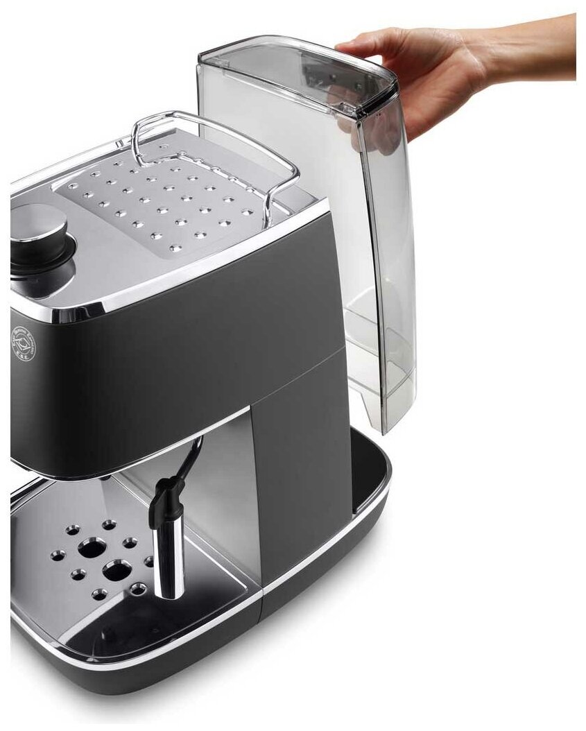 Кофеварка DeLonghi ECI 341 BK позволяет готовить роскошный капучино с молочной пенкой. Взбейте с помощью ручного капучинатора молочную пену и добавьте ее в напиток. Наслаждайтесь отличным вкусом! Все в DeLonghi ECI341BK устроено таким образом, чтобы Вы не испытывали никаких неудобств и могли готовить кофе с удовольствием. Съемный резервуар для воды вмещает 1 литр. Специальная платформа для чашек подогреет посуду, чтобы вкус и аромат напитка раскрылись.