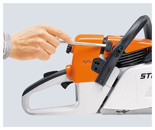 Надёжная профессиональная бензопила STIHL MS 310 выполнена в классическом дизайне, который оценит как опытный пользователь, так и новичок. Пила является универсальным помощником при строительстве, заготовке леса в насаждениях малой и средней плотности, заготовке дров для сельского хозяйства или коммунальной сферы. Доступ к натяжному винту обеспечивается сбоку через крышку цепной звёздочки, что предотвращает контакт рук с острой цепью и кончиками зубчатого упора.