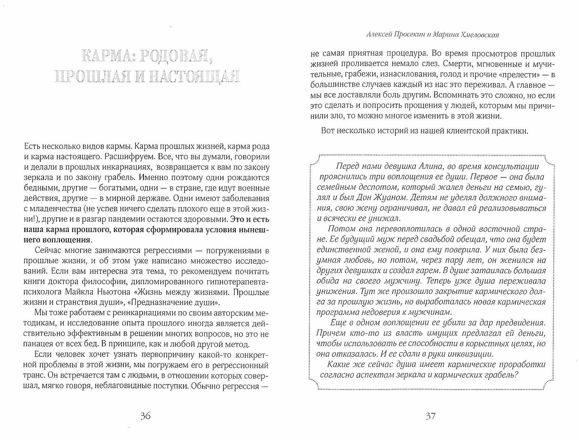 Книга Алексея Просекина и Марины Хмеловской "В жизни справедливо всё" - новый взгляд на древние законы кармы. Ведь в привычном понимании карма - это то, что человек не может изменить, и вынужден расплачиваться за содеянное в прошлом. Но авторы утверждают: плохую карму можно исцелить. Более того, вполне реально наработать карму хорошую и пожинать ее плоды здесь и сейчас.