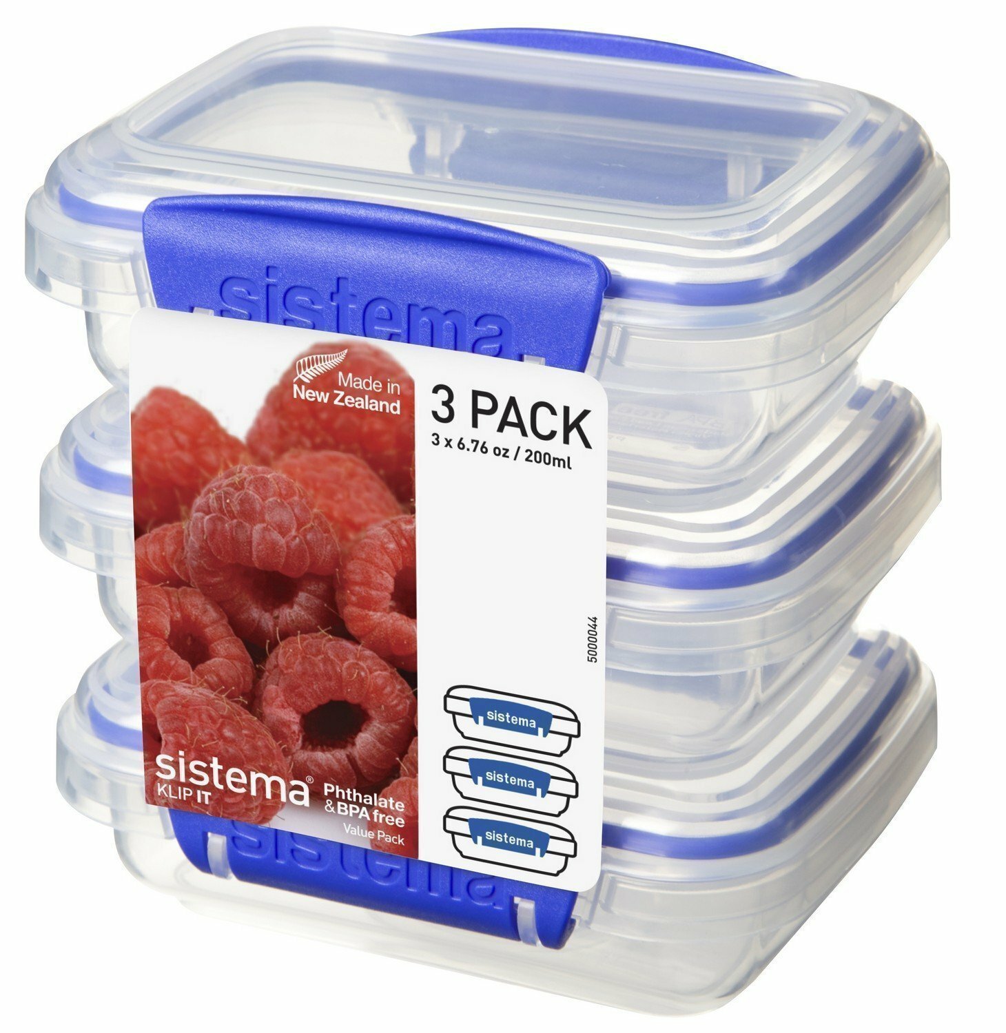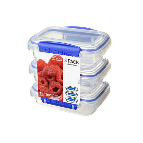 В набор входят 3 прямоугольных контейнера объемом 200 мл Экономия места – модульная система хранения. Подходит для использования в холодильнике и морозильной камере. Можно использовать в микроволновой печи без крышки. Сохраняет свежесть продуктов – силиконовый уплотнитель. Плотное закрытие – фирменные защелки Sistema. Легко моется – можно мыть в посудомоечной машине. Безопасный – не содержит бисфенол А и фталаты. Разработано и произведено в Новой Зеландии.