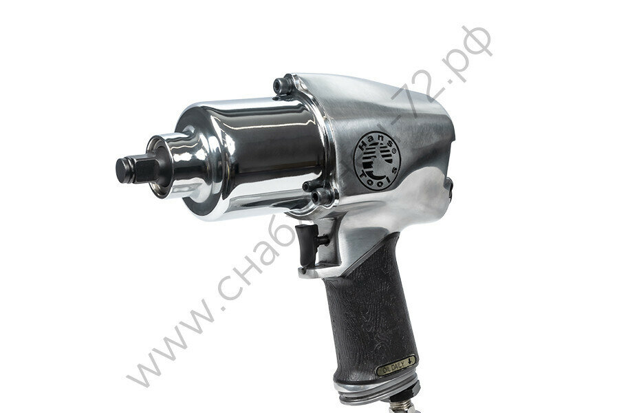 Пневматический гайковерт Hans 1/2" позволяет значительно экономить время на монтаж и демонтаж крепежа. Он оснащен фиксатором с фрикционным кольцом, что обеспечивает быструю смену головок. Диаметр воздушного шланга должен составлять 3/8 дюйма. Модель подходит для работы в тяжелых условиях. В качестве расходки необходимо использовать только торцевые головки и аксессуары ударного типа.