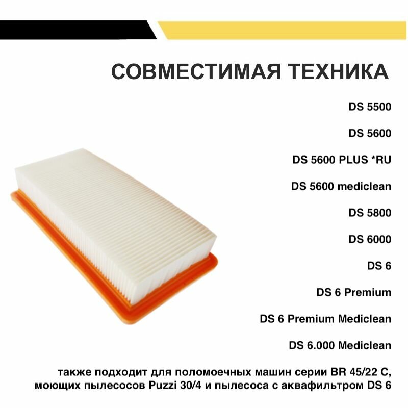 - Фильтр плоский складчатый KRF-2 для пылесосов Karcher DS5500, DS5600, DS6000, DS5800, 631.0-6.414