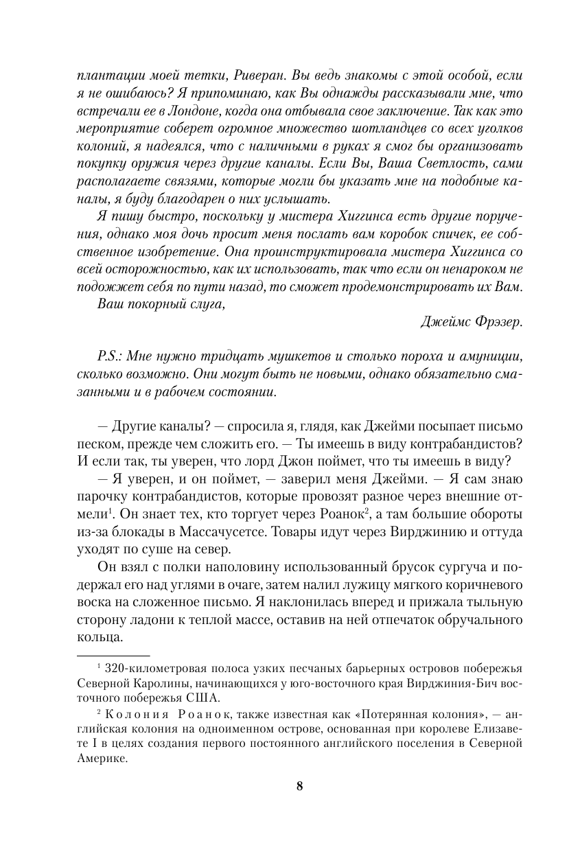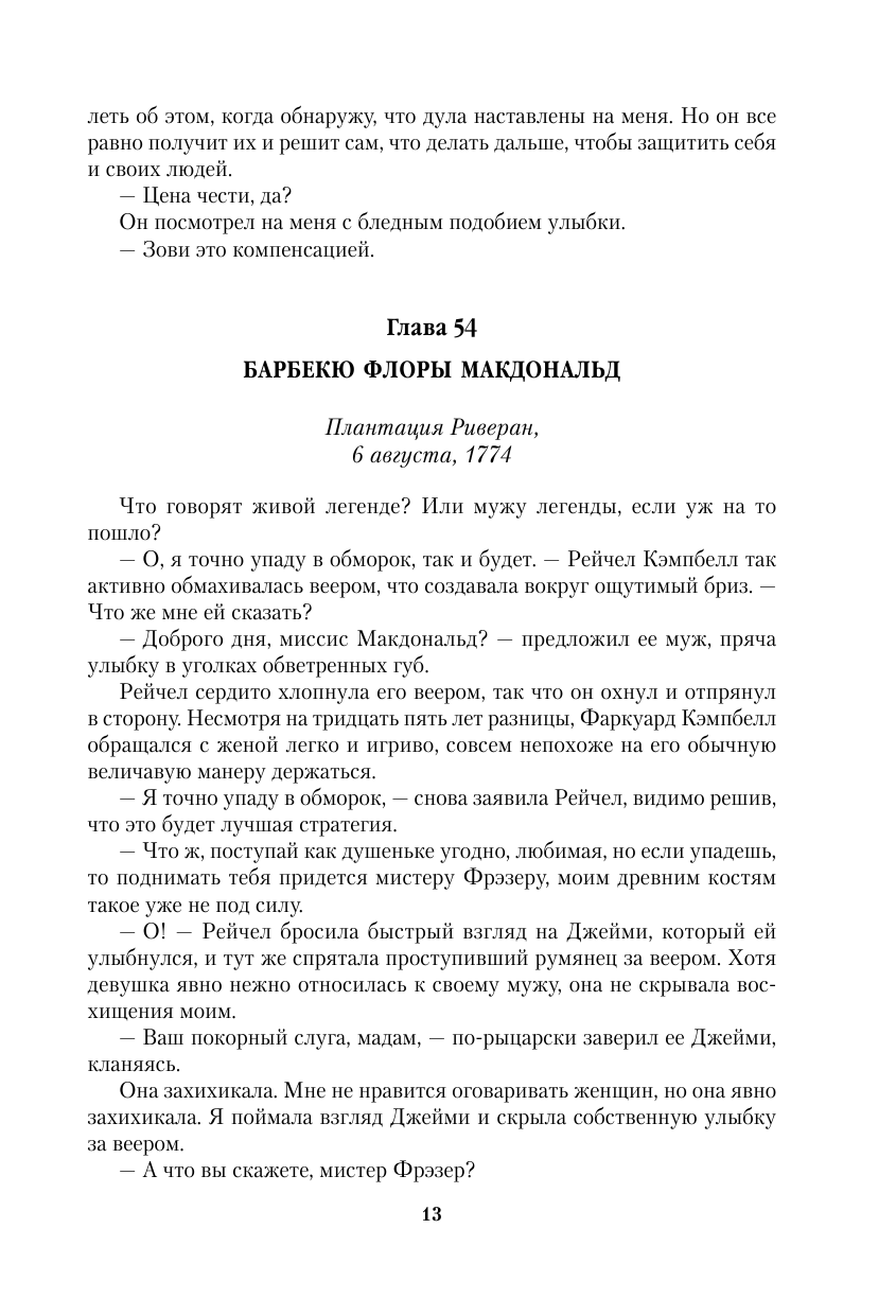 Свершилось! Дамы, а я думаю что в основной массе читают подобные произведения дамы, если вы еще не приобщились к этой замечательной истории и не влюблены в Джейми Фрэзера - торопитесь! Жизнь течет стремительно, и в ней не так много хороших историй. Именно это произведение на крайне высоком уровне. Перемещение во времени, приключения, построение взаимоотношений, преодоление трудностей, исторические события и конечно любовь! Издание замечательное. Обязательно читать! -