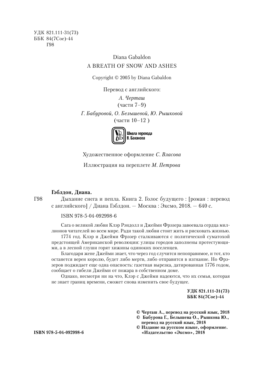 Дыхание снега и пепла. Книга 2. Голос будущего (Гэблдон Диана , Бабурова Галина Юрьевна (переводчик), Черташ Антонина Владиславовна (переводчик)); Эксмо, 2018