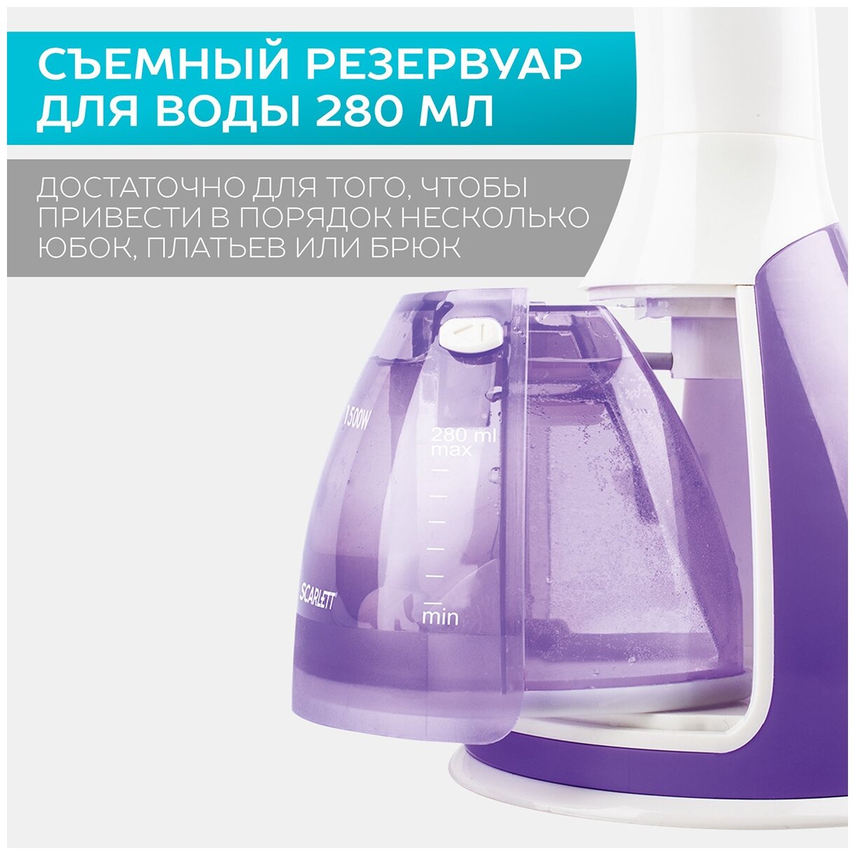 | Прочие особенности и свойства | Ручной отпариватель SC - GS135S10 избавит вас от складок и освежит одежду без какой-либо гладильной доски! Пальто, куртки, рюши, оборки, кокетки, прочие декоративные элементы не проблема. Прибор выдает пар до 60 г/мин. Резервуара объемом 280 мл достаточно для того, чтобы привести в порядок несколько юбок, платьев, брюк и т.п. Благодаря мощности 1500 Вт долго ждать не понадобится – всего 25 секунд, и можете приступать! Прибор оснащен системой автоотключения:отпариватель выключится сам, когда закончится вода в резервуаре. А для более качественной обработки одежды можно использовать насадки, входящие в комплект. |