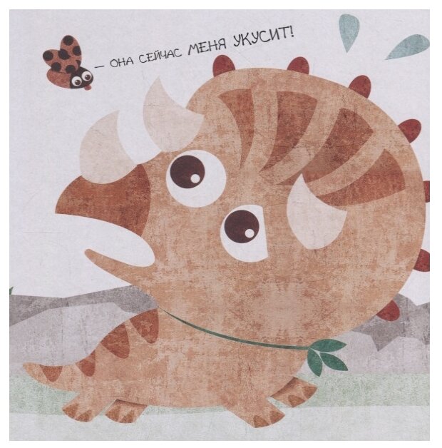 Милая коротенькая история о том, как диназаврик испугалась божью коровку. Расчитана книжка на очень маленьких слушателей, деткам постарше будет маловато. Сама книжка небольшого размера, страницы картонные, рисунки красивые, но не сильно яркие. Запахов химических нет.