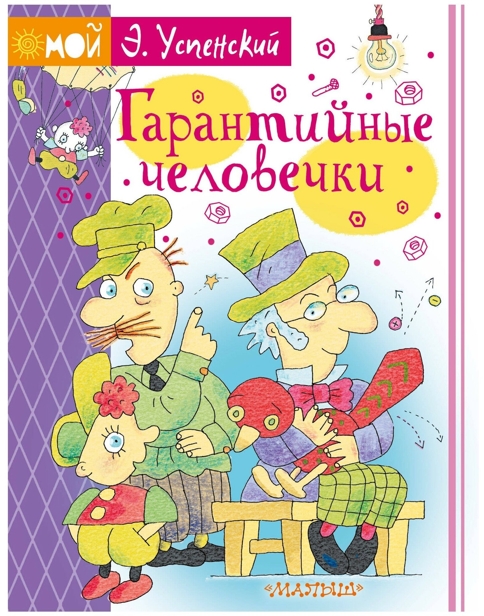 Большая, яркая, красочная книга с миллионом иллюстраций на каждой странице! Но язык Успенского настолько образный, что иллюстрации порой не нужны, всё, о чём он пишет, очень легко себе представить! Гарантийные человечки - прототипы современных фиксиков, такие же ответственные, умненькие, деловые, приходят на выручку друг к другу, помогают людям, чинят все механические и электроприборы в доме. Истории увлекательные, порой очень смешные, мой шестилетний сын хохотал от восторга, мы буквально проглотили эту книжку за пару вечеров перед сном, хотя она довольно внушительных размеров. Деткам младшего школьного возраста тоже будет интересно! Шрифт крупный, сами смогут прочитать. В общем очень рекомендую! И в качестве подарка превосходный вариант!