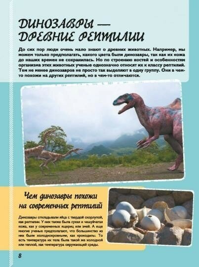 Это издание будет интересно всем юным любителям динозавров. Ведь здесь собрана уникальная информация о животном мире всех континентов нашей планеты в доисторические времена. В этой книге представлены основные виды динозавров с описанием их облика, повадок и особенностей поведения. Многочисленные яркие иллюстрации, сопровождающие ёмкие статьи, помогут детям лучше вообразить себе основных представителей древнейшего животного царства. Для удобства читателя самые важные сведения собраны в краткие заметки, а интересные факты из жизни ископаемых ящеров сделают чтение этой невероятной книги еще более полезным и занимательным.
