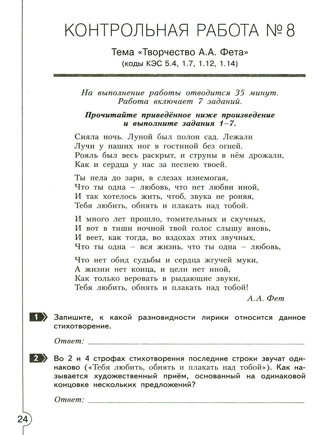 Тетрадь тематических тестовых работ предназначена для мониторинга предметных достижений десятиклассников по основным темам курса литературы и позволяет целенаправленно готовить учащихся к различным процедурам внутренней и внешней оценки, в том числе к итоговым работам за год, ЕГЭ, ВНР. Тестовые задания разработаны на основе Кодификатора элементов содержания и требований к уровню подготовки выпускников образовательных организаций для проведения единого государственного экзамена по литературе. Благодаря этому проверяется только тот учебный материал, который подлежит обязательному контролю при оценке качества образования.