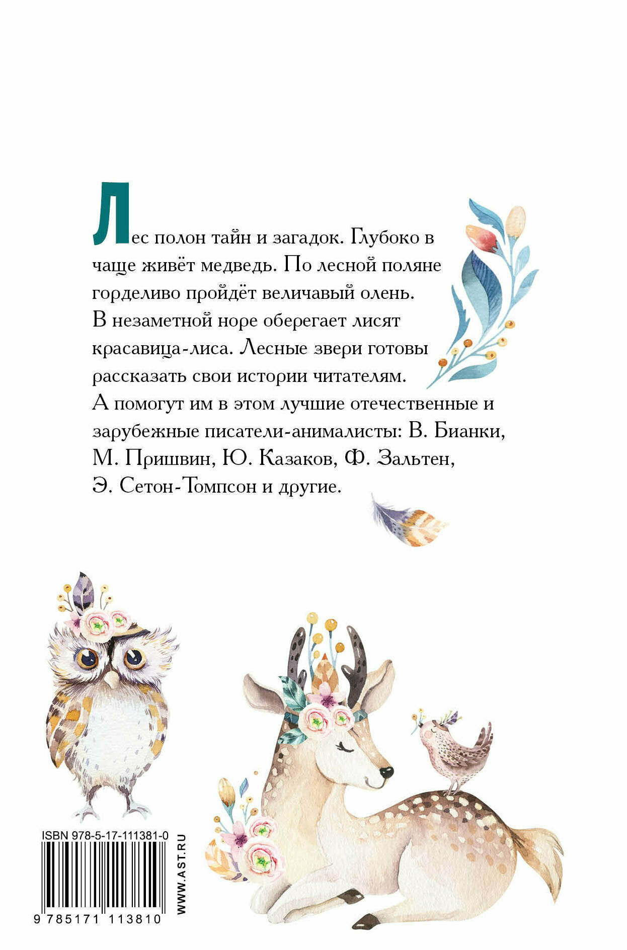 Отличный состав! То, что нужно для младшей школы. Книга больше похожа на хрестоматию: в ней собраны рассказы и произведения по теме. Среди популярного: ДРЕМУЧИЙ МЕДВЕДЬ (Паустовского), СИНИЧКИН КАЛЕНДАРЬ (Бианки), БЮРО ЛЕСНЫХ УСЛУГ (Сладкова), БЭМБИ (Зальтена). Достаточно крупный шрифт, читается легко!