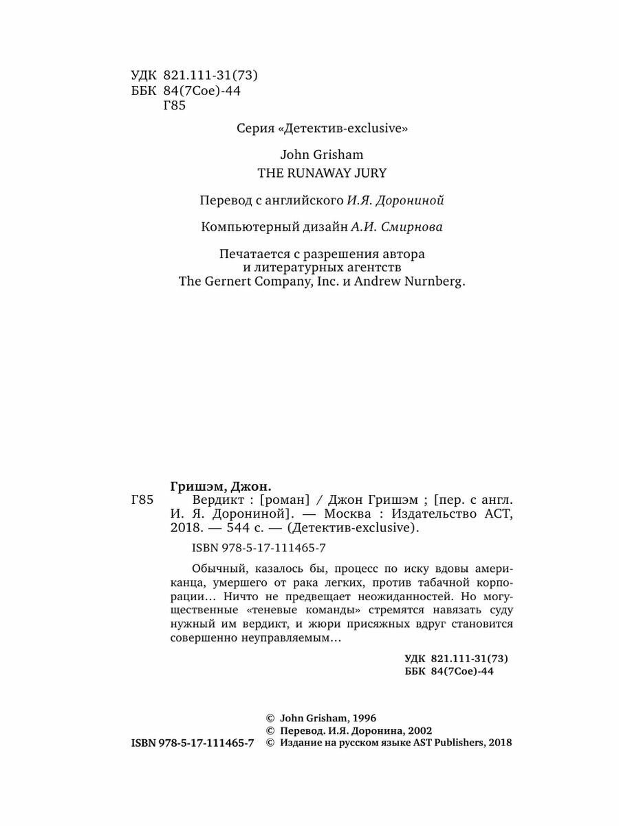Книга: Вердикт (Доронина Ирина Яковлевна (переводчик), Гришэм Джон); АСТ, 2018