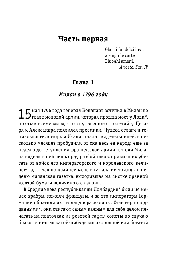 Произведения Стендаля никогда не читала. Это было первое знакомство с автором. Могу с уверенностью сказать, что оно прошло успешно! Слог красивый, понятный и, самое главное, интересный! Гармоничное сочетание описания и повествования.